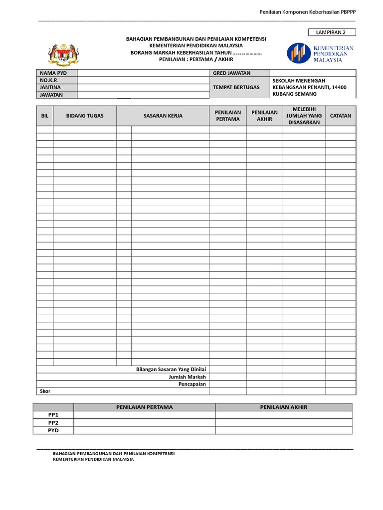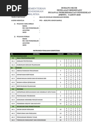 Borang Skor Pbppp Guru Tahun 2020 Fasa 2 Pdf